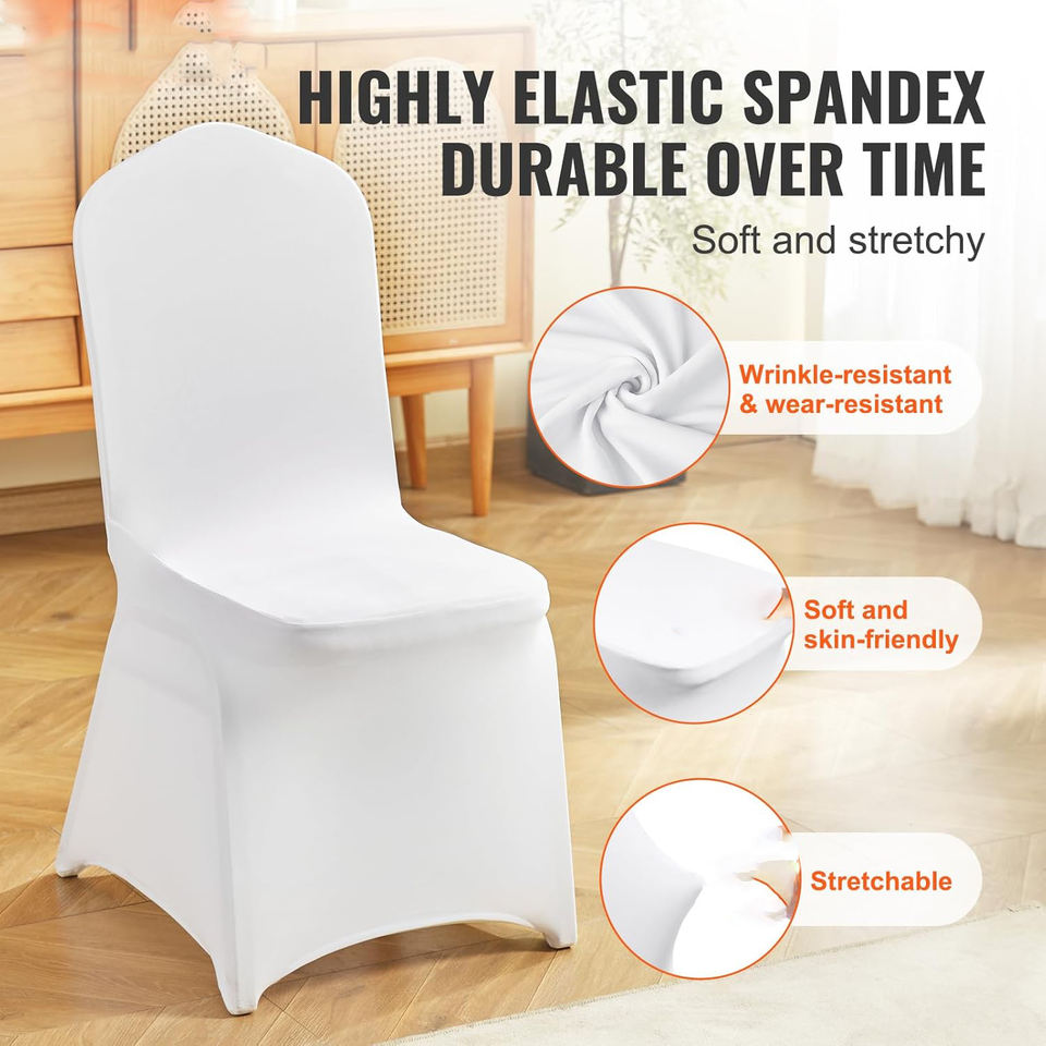 200PCS White Universal Spandex Stretch Chair Slipcovers Foldable Covers for Wedding Holiday Banquet Party Celebration