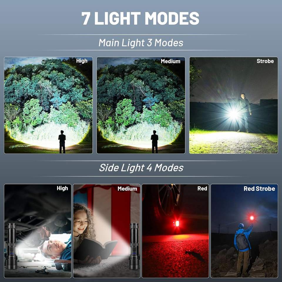 50W LED Flashlight USB Rechargeable Zoomable Emergency Torch Super Bright Spotlight Long Range Tactical Camping Lantern