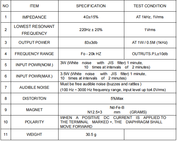 50x18mm Dynamic Multimedia Speaker 4ohm 3W AcoustiDescription