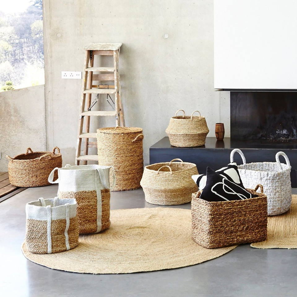 50x37cm 4-Handled Water Hyacinth Basket, Eco-friendly Sustainable Storage Basket for Clothes Pillow Blanket Made in Vietnam