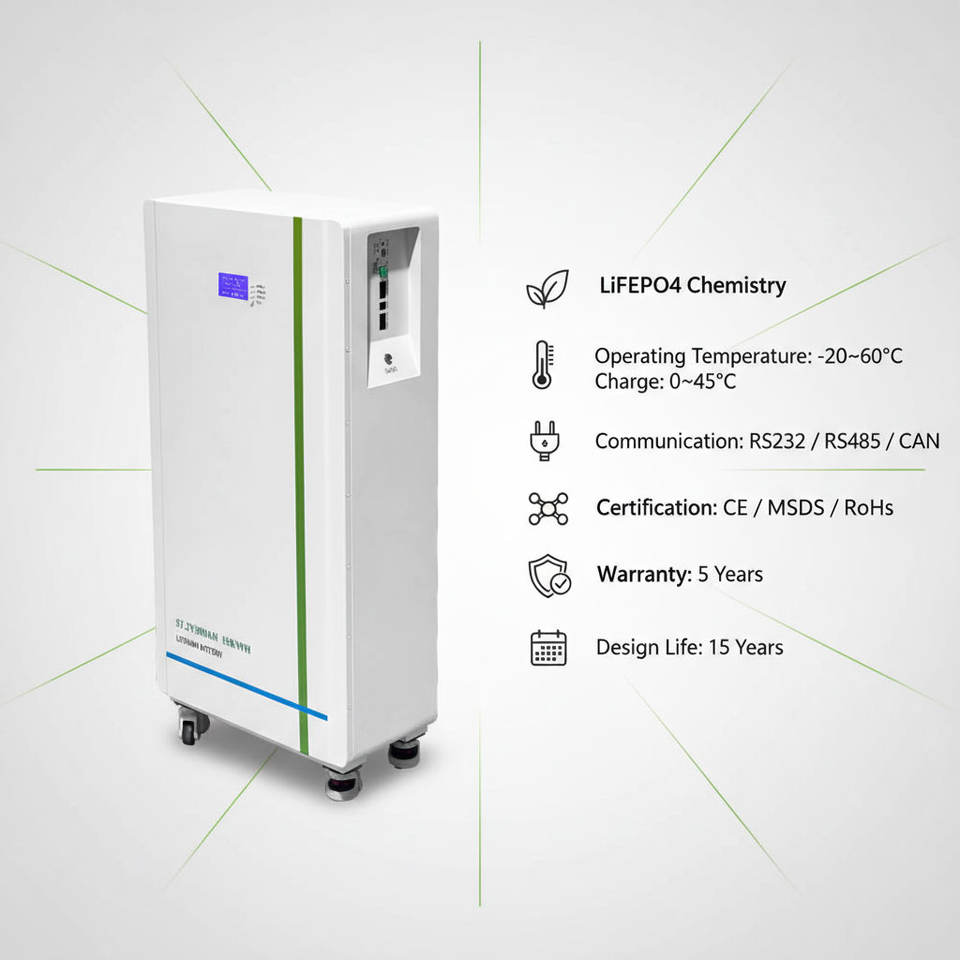51.2V 16kWh Wheeled LiFePO4 Solar Battery Storage Home Energy Storage ESS Mobile Cabinet LCD Display CAN RS485 Parallel IP55