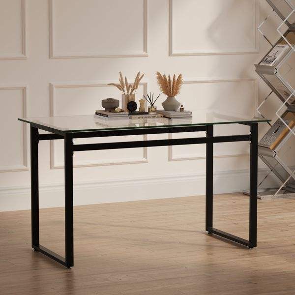 51\" Modern Minimalist Rectangular Dining Table for 4 6 with 0.31\" Tempered Glass Top and Black Chrome Metal Legs