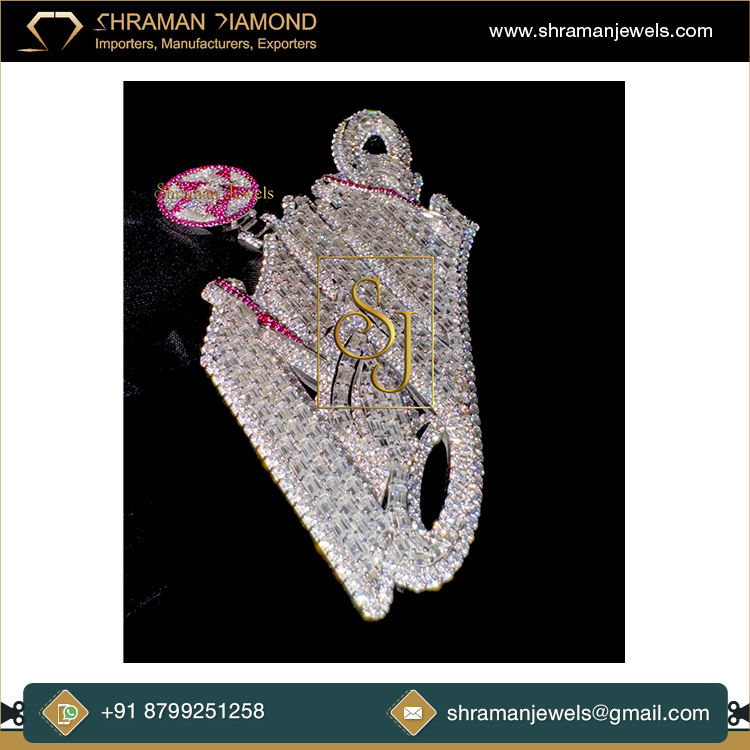 Design:Iced Out Personalized Bail With 925 Silver Moissanite Diamond Pendant
