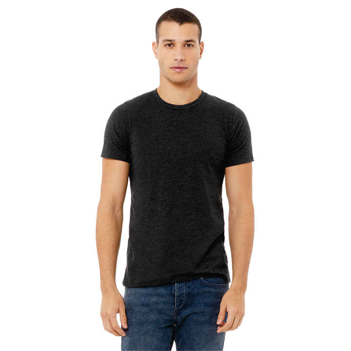 52% Airlume Combed and Ring Spun Cotton 48% Poly 32 Single 4.2 oz Dark Grey Heather Unisex CVC Short Sleeve T-Shirt