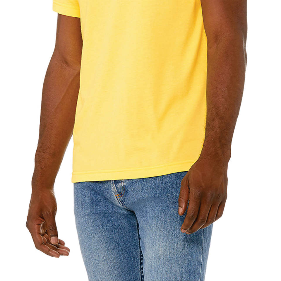 52% Airlume Combed and Ring Spun Cotton 48% Poly 32 Single 4.2 oz Heather Yellow Unisex CVC Short Sleeve T-Shirt