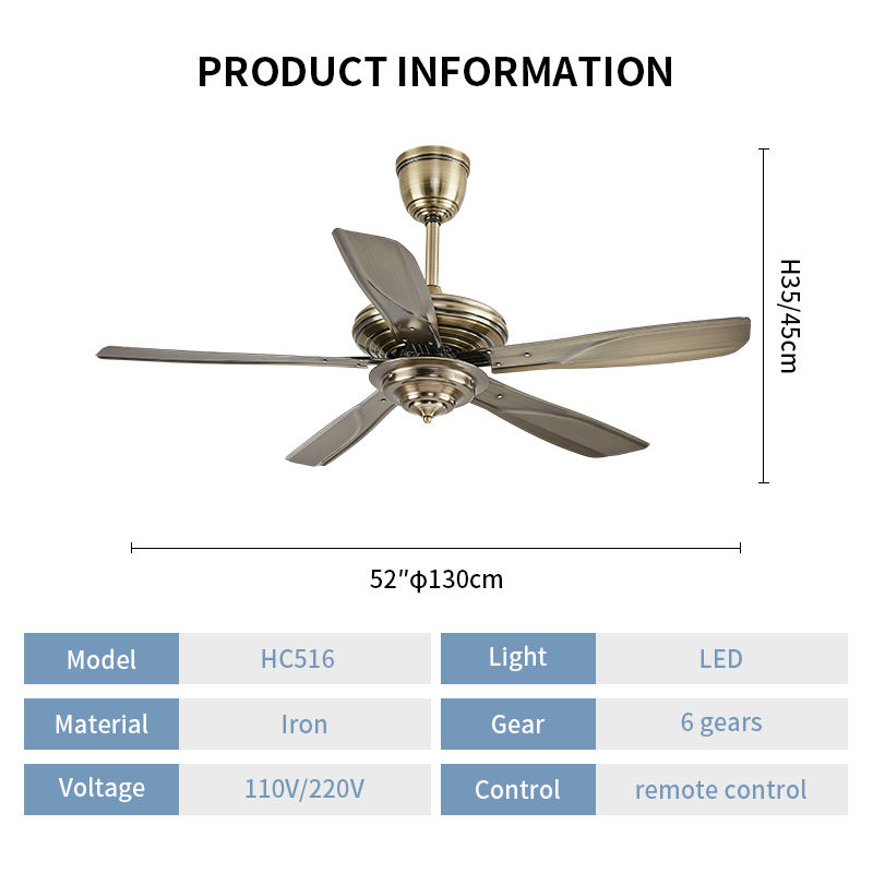 52 Inch Modern Classic Chandelier for Living Room Super Silent DC Motor Ceiling Fan with LED Light Source