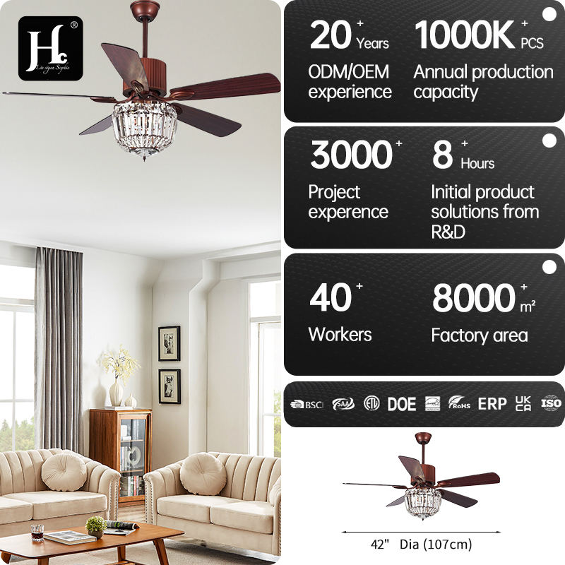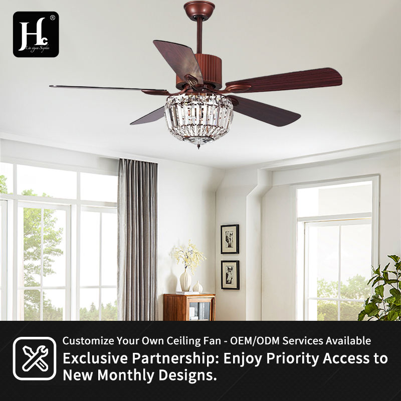 52 inch remote control ceiling fan crystal+iron ceiling fan with LED lights