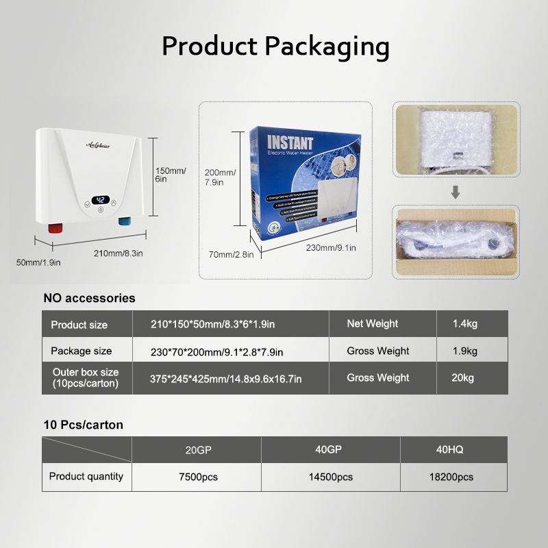 5200W 240V 50Hz CE Certified Electric Instant Shower LED Display Plastic for Small Bathroom Hotel Household Use Salty Water