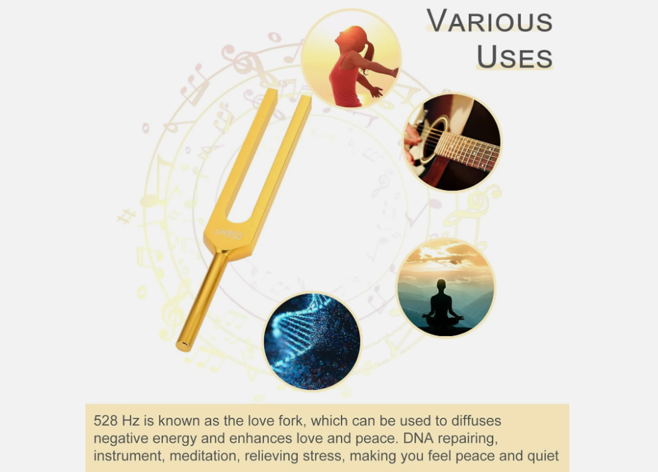 528 hz Tuning Fork with Silicone Hammer Cleaning Cloth Violin/Guitar/Piano Tu...