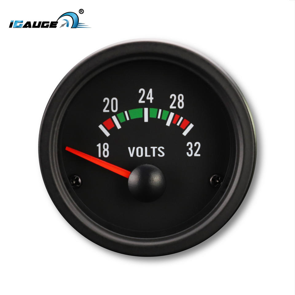 52mm Universal Black Face Rim Flat clear Lens 90 Degree Bulb Light Electrical 18~32v Volt Gauge 24V Auto Tuning Car Vehicle
