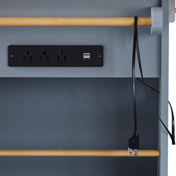 53-Inch Large Kitchen Island Cart 5 Rollable Wheels 5 Openings Drop Leaf Power Outlet Door Internal Kitchen Islands Carts