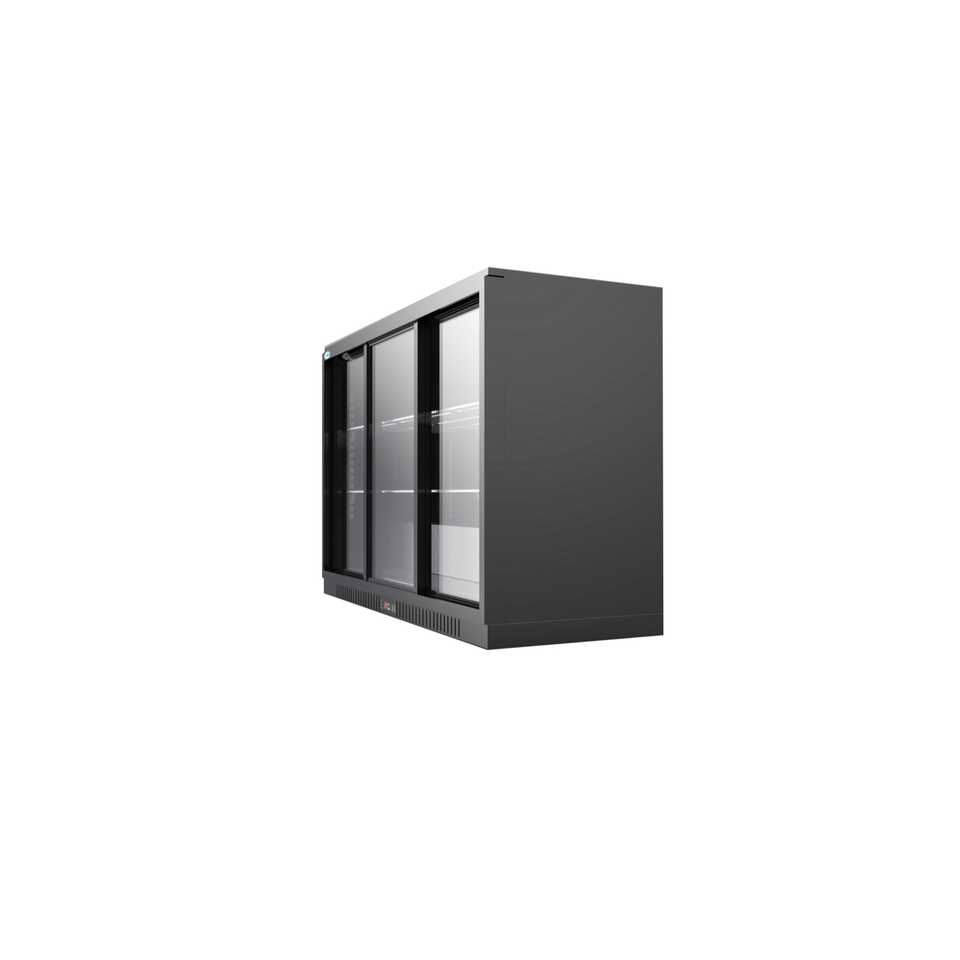 53-Inch Three-Door Sliding Doors Adjustable Shelves Commercial Kitchen Back Bar Refrigerator 11.3 Cu Ft Automatic Defrost Model