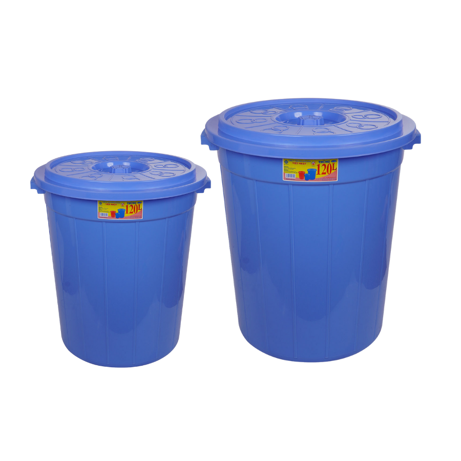 5380 BARREL 120L WITH LID PP Material Plastic Bucket Red Blue Color Plastic Bins Storage Buckets Custom Logo Made in Vietnam