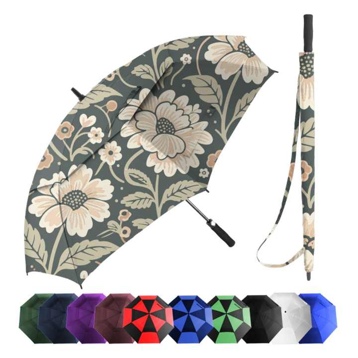 54 Inch/ 60 Inch / 68 Inch Huge Size Flower Pattern Golfer Umbrellas Double Canopy Umbrella Uv Factory Price