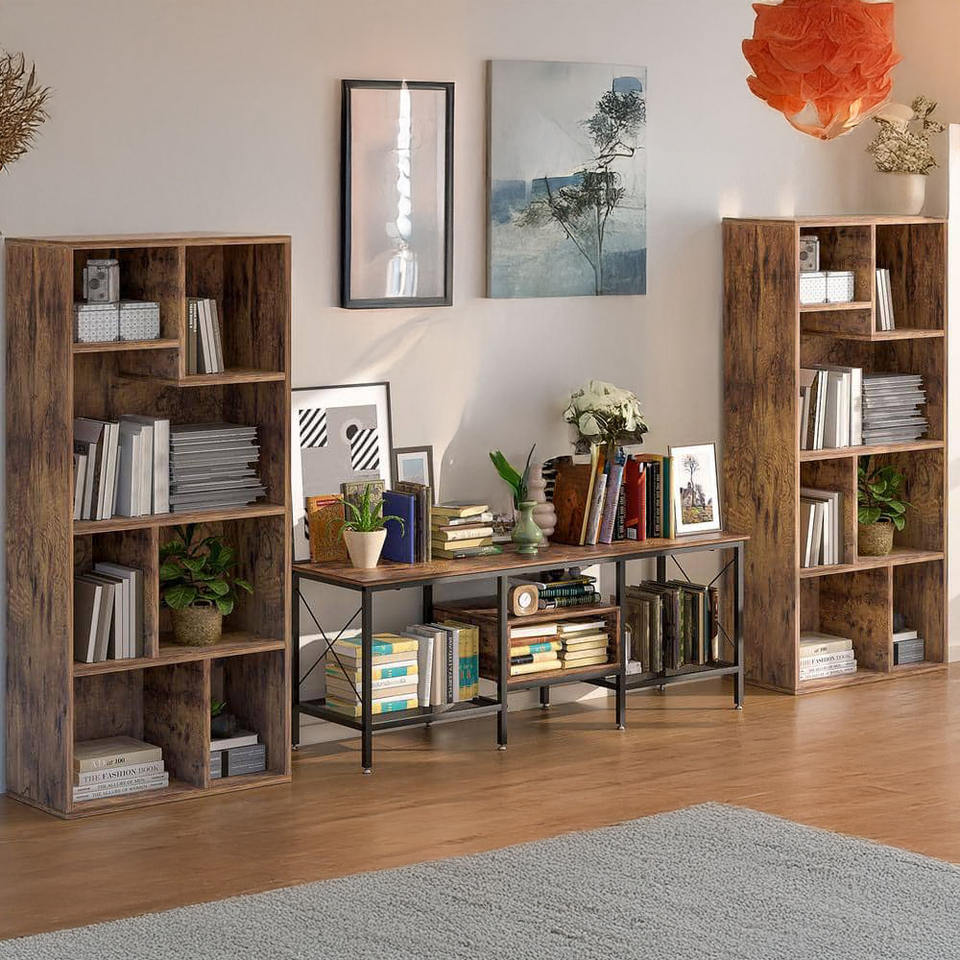55-Inch Brown Wood Metal Console Table Heavy-Duty 3 Open Shelves Industrial TV Stand Entertainment Center for Bedroom Living