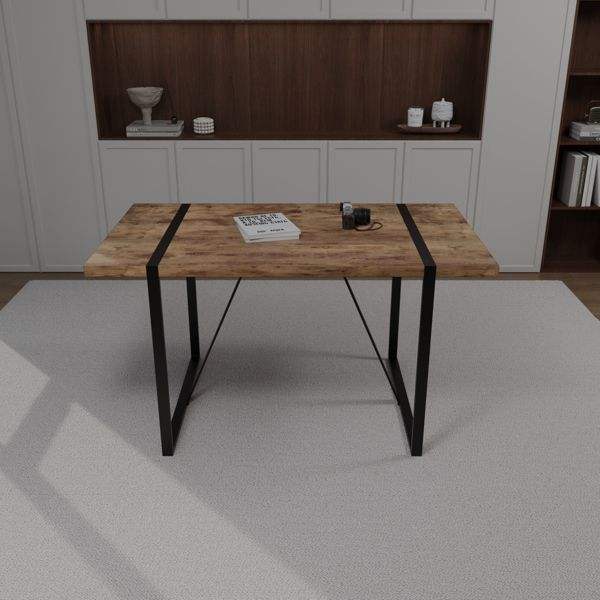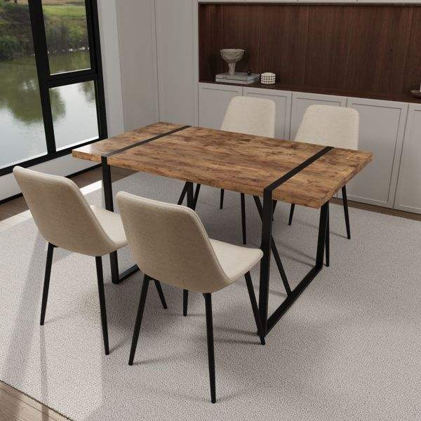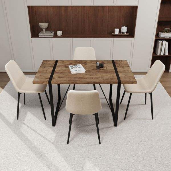 55\" Modern Dining Table Set MDF Dark Wood with 4 Piece Medieval Wooden Kitchen Chairs Rectangular Metal Restaurant Sets