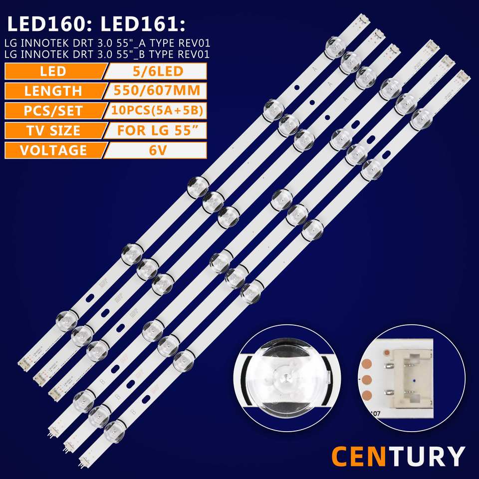 55LB TV LED Backlight Strips LED160 LED161 for LG INNOTEK DRT 3.0 55"_A/B TYPE REV01(1set=5A+5B)