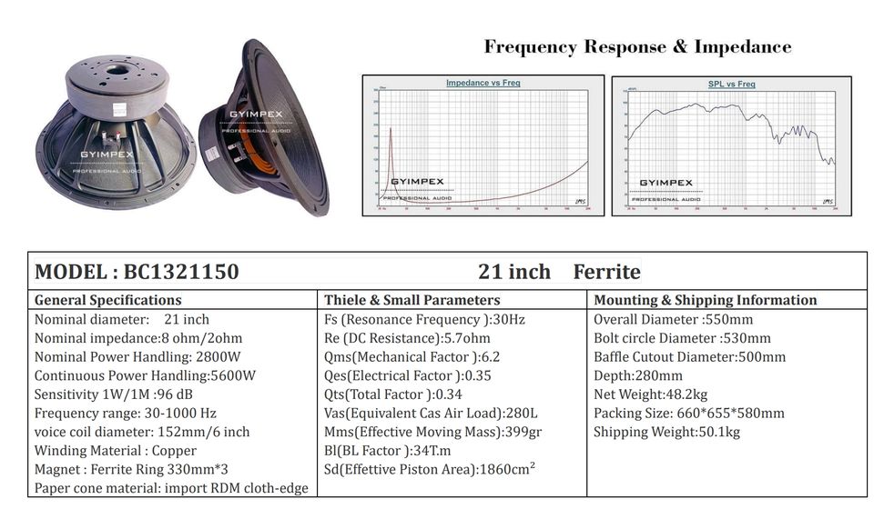 Product:6 inch voice coil 21 INCH driver Ferrite 330mm*3 magnet 21'' speaker