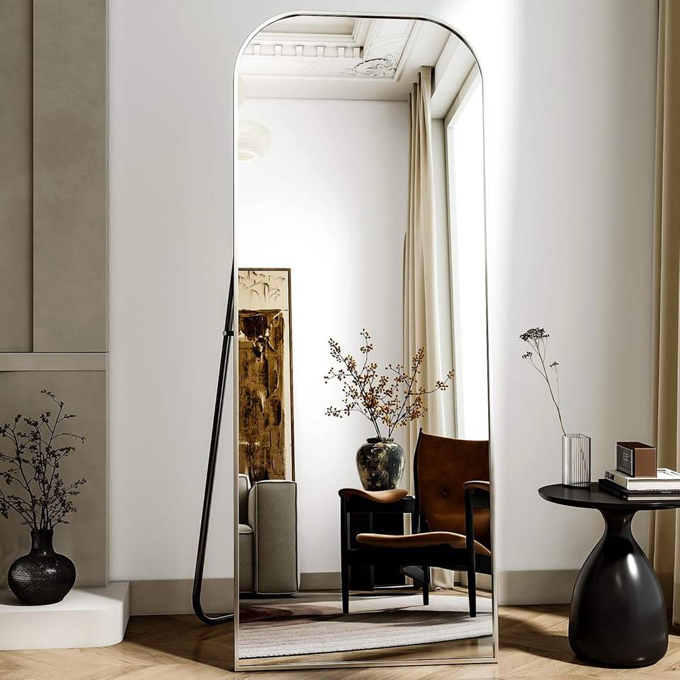 56x21 Inch Length - Large Floor Standing & Wall Mountable Full Body Mirror with Sturdy Aluminum Frame, Arched Top Design,