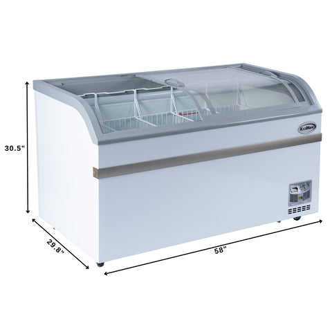 58-Inch White Manual Defrost Island Chest Freezer 14 Cu. Ft. Single Curved Sliding Door ETL NSF Certified Household Hotel
