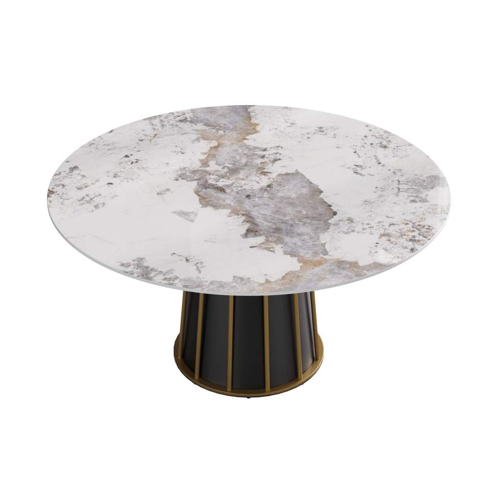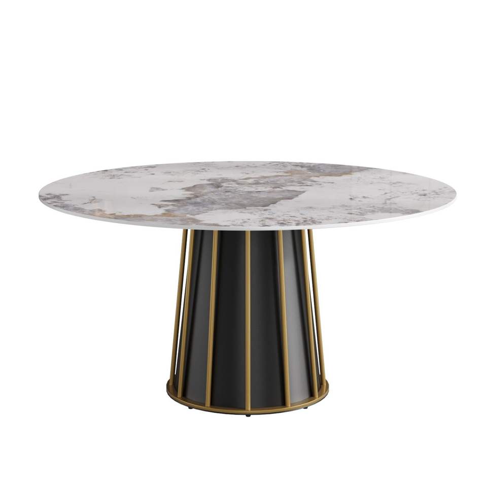 59.05 Modern Dining Table with White Artificial Stone Panel Metal Iron Base Accommodates 6-8 People Chairs Not Included