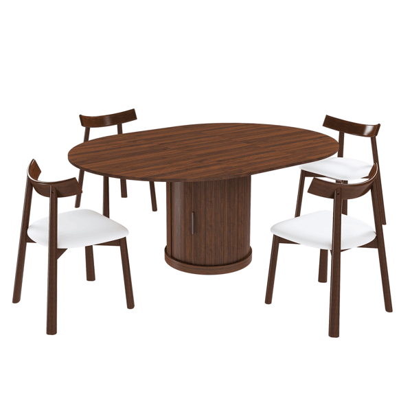59\" Extendable Oval Dining Table Set with 4 Walnut Chairs 47-59\" Rail Free Expandable Table 2 Tier Storage PU Cushioned Seats