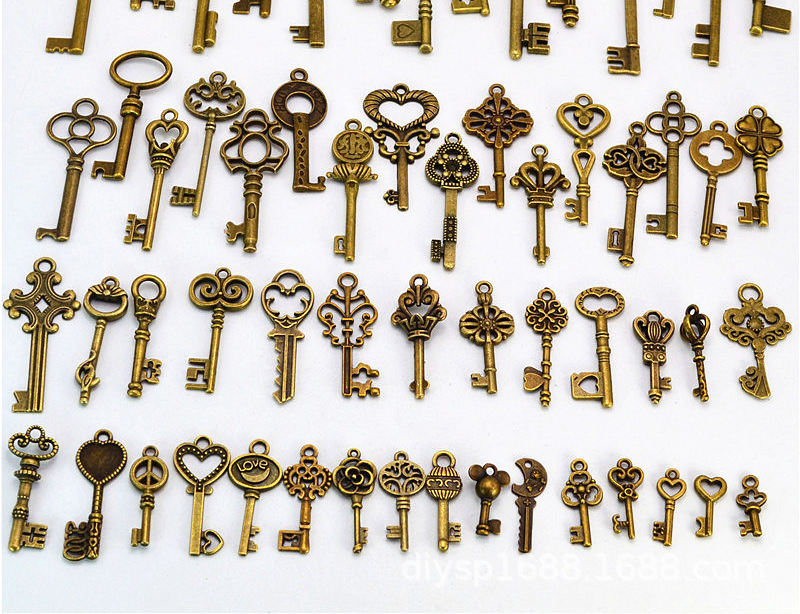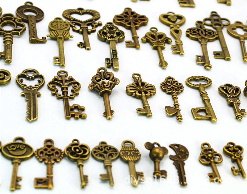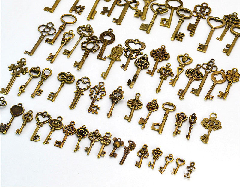 59-Piece Antique Bronze Skeleton Key Charms Set Small Vintage Key Chains Customized Logo ACASA ARTO Christmas Decorations
