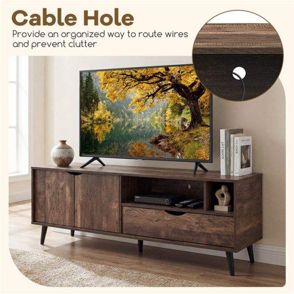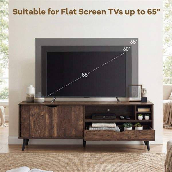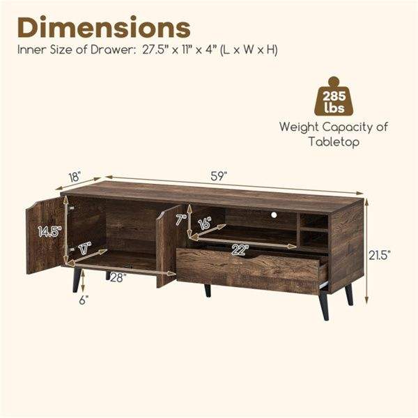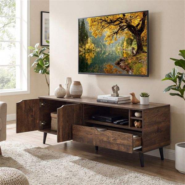 59\" Rustic Media Console for 65\" TVs TV Stand with Cabinet Drawer 3 Open Shelves