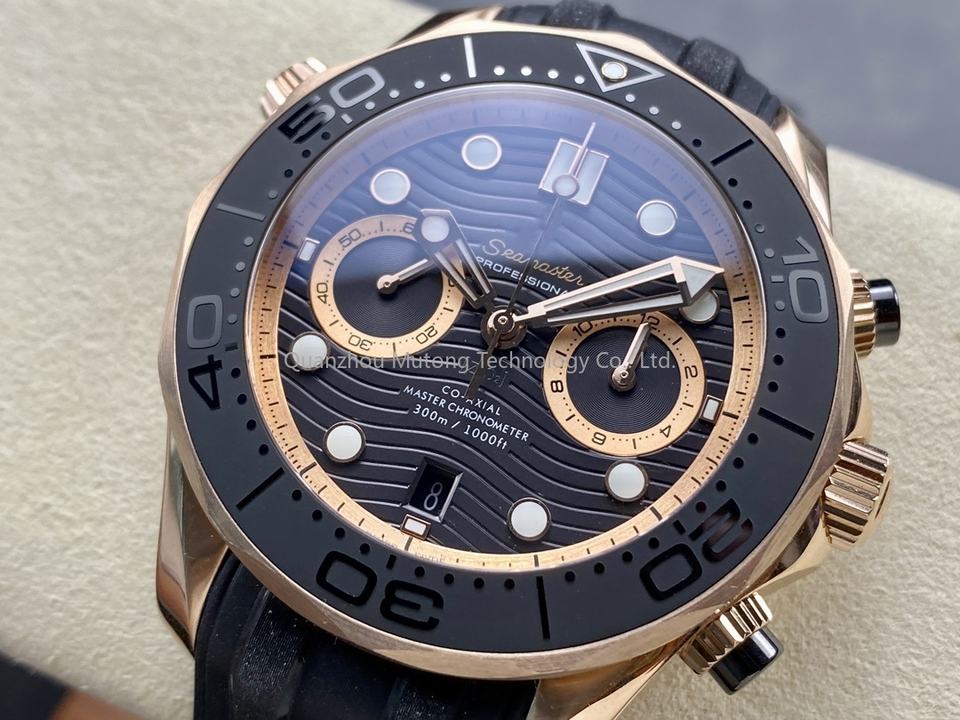 5A Quality Rose Gold 44mm Mechanical Diving Watch with 9900 Movement 300m Chrono Black Ceramic Bezel Rubber Band New