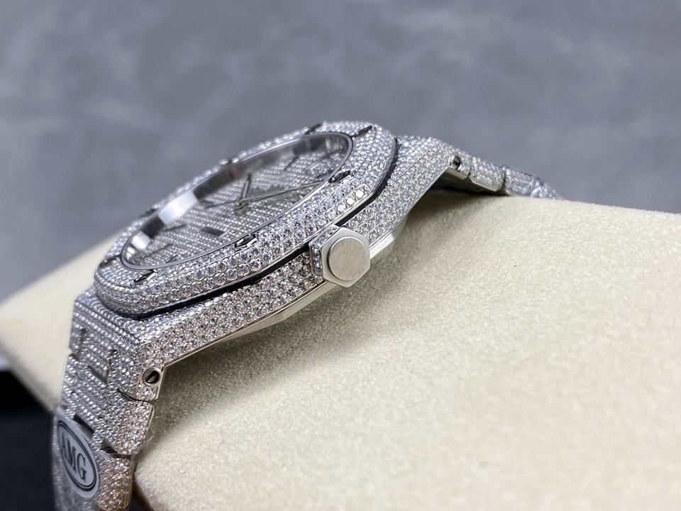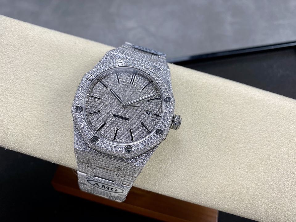 5A super quality mechanical watch 41mm AMG factory 3120 movement 15400 starry white full ice diamond watch
