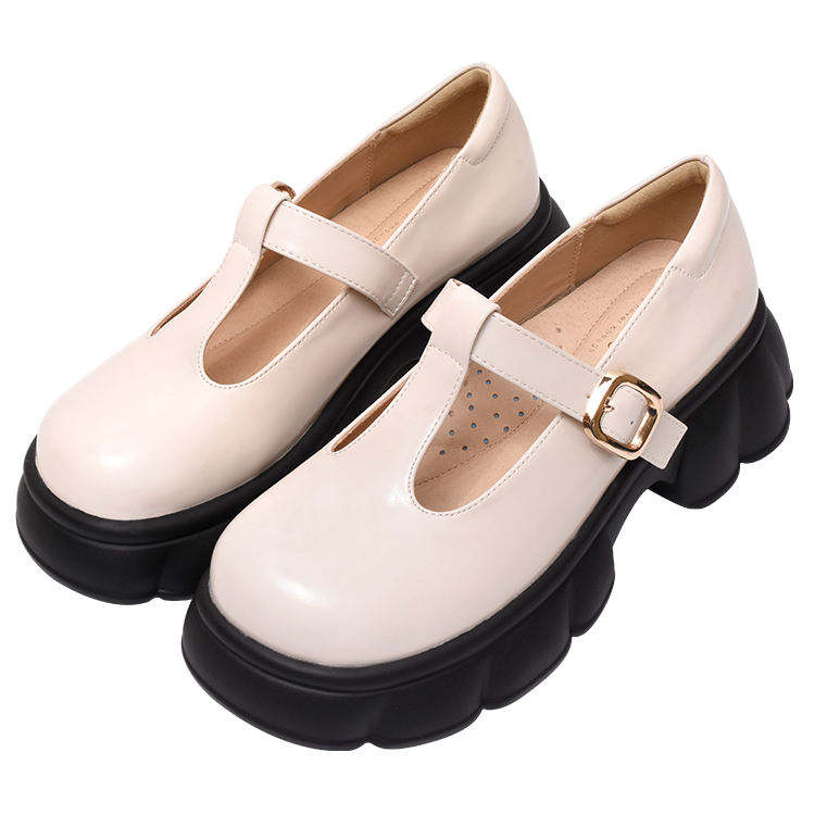 5CM Beige Cowhide Platform Loafers