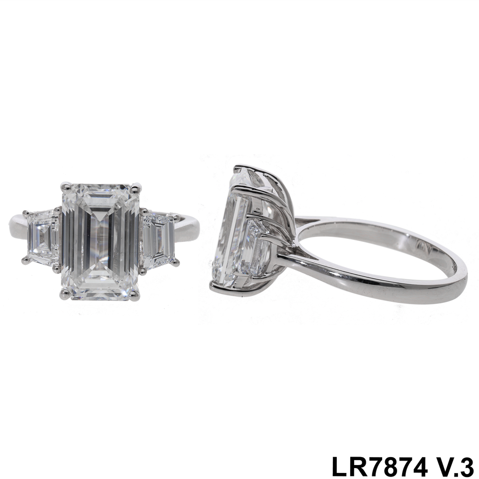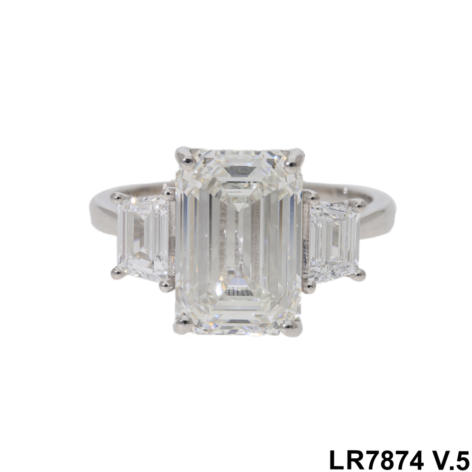5CT Lab Grown Emerald Cut Diamond 3 Stone & 0.8ct Trapezoid Engagement Ring in 14K Gold Emerald Cut Lab Grown Diamond Ring