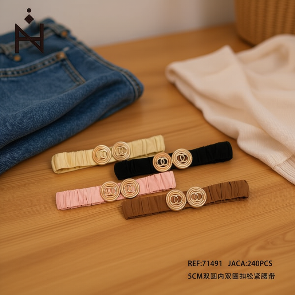 5Cm Double Round Inner Double Loop Elastic Waistband Cinturones