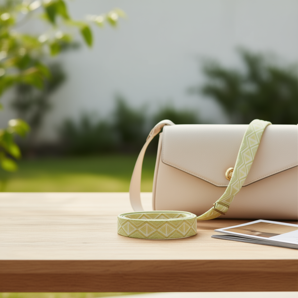 5Cm Triangular Checkered Green Webbing Strap For Bag