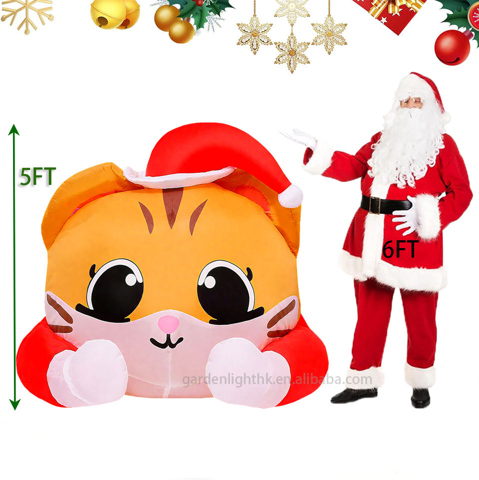 5FT Christmas Inflatable Cat Decor with Santa Hat Indoor Outdoor Use for Home Garden Lawn Festival Party Customized Wholesale