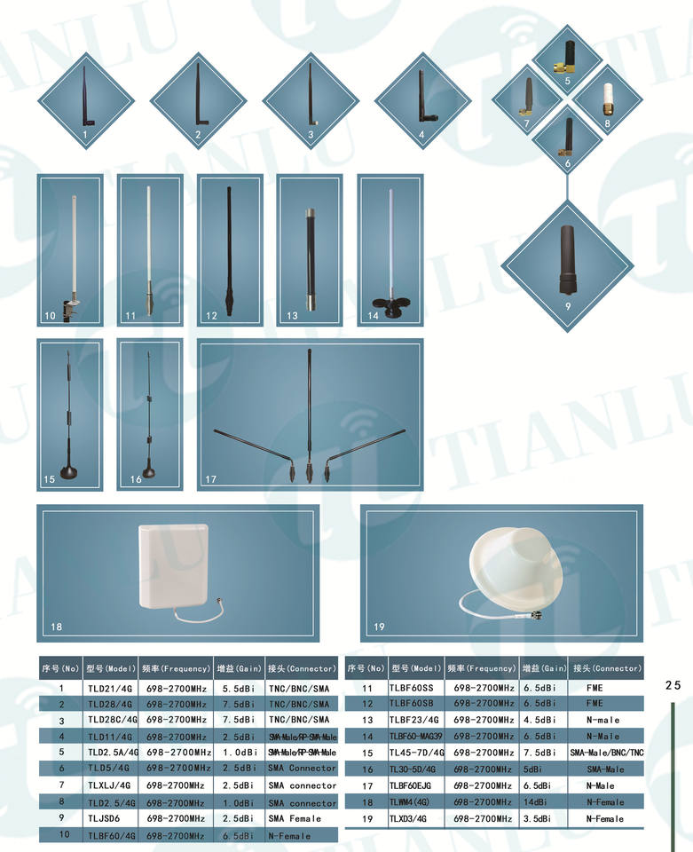 Antenna Frequency:698-2700 MHz or 695-4800mhz