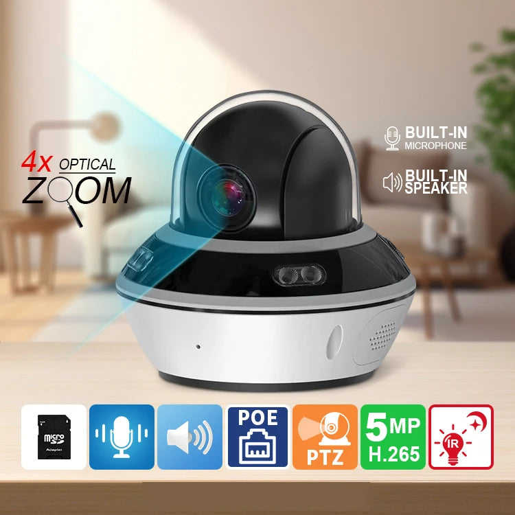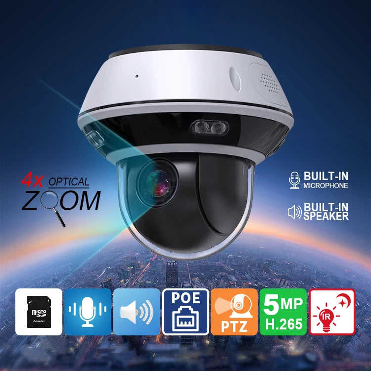 5MP 8MP HD POE PTZ IP Dome Camera Outdoor Built-in Mic 4X Zoom Security CCTV Video Surveillance Cam