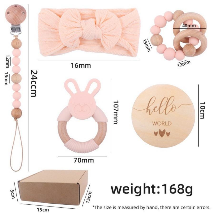 5PCS Food Grade Silicone Baby Pacifier Clip Chain Holder Beech Wooden Baby Teething Toy Newborn Gift Set for Babies