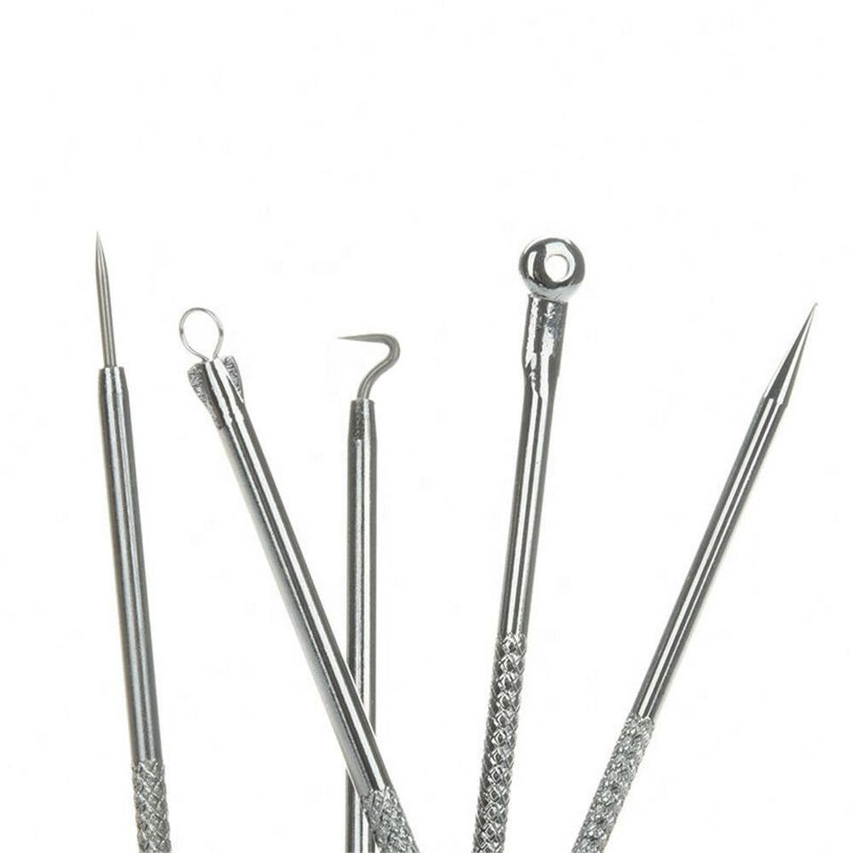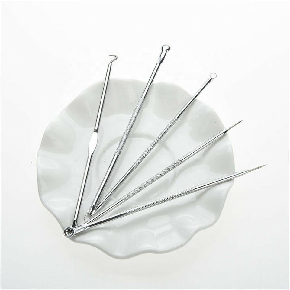 5Pc Professional Blackhead Remover Extractor Removal Steel Blemish Pimple Comedone Acne Whitehead Removal Tool Set