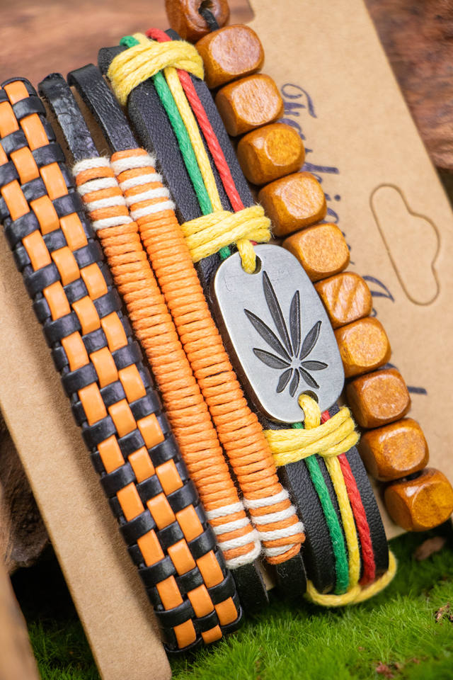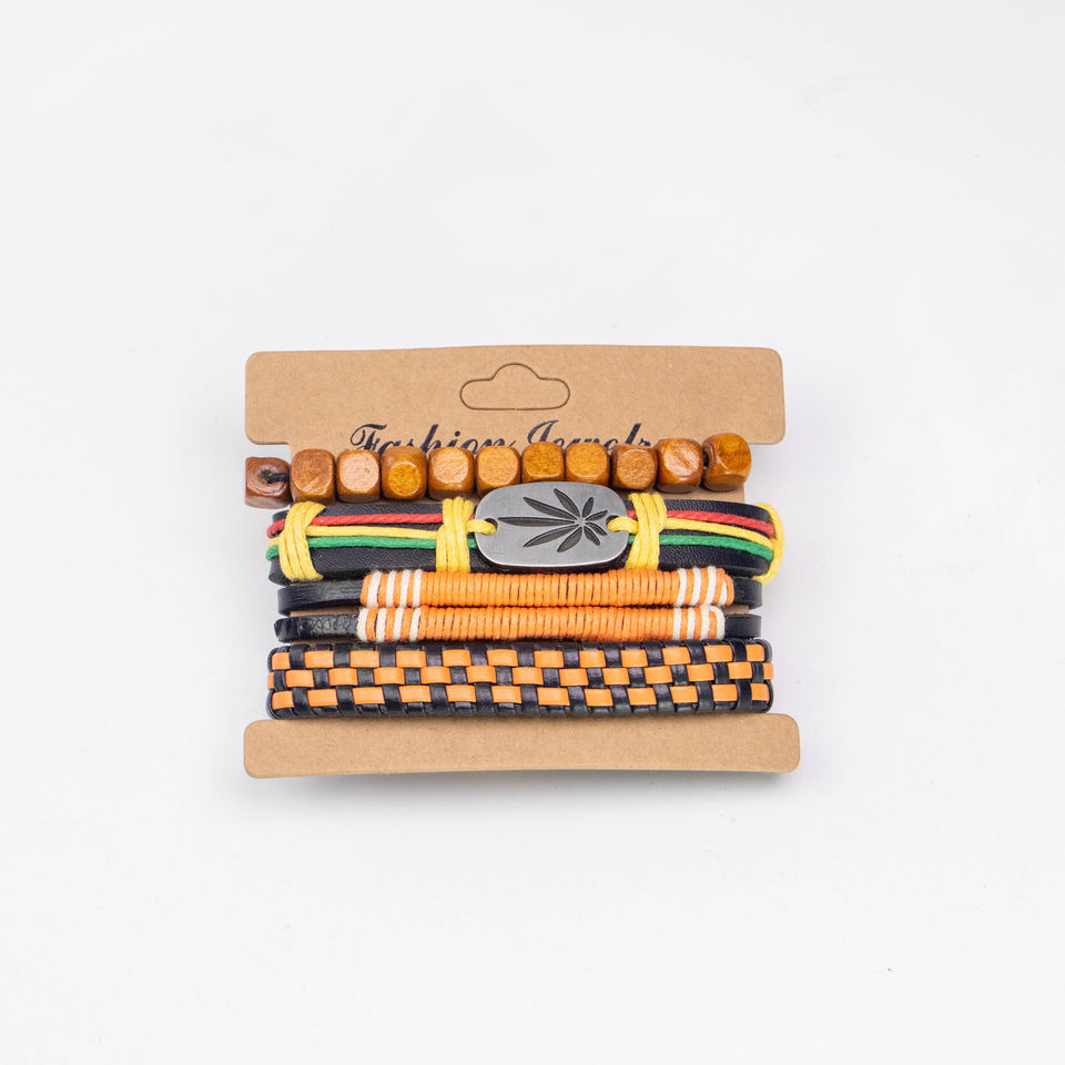 5Pcs/ Set Braided Wrap Leather Bracelets Unisex Classic Vintage Life Tree Rudder Charm Wood Beads Ethnic Tribal Wristband Rope