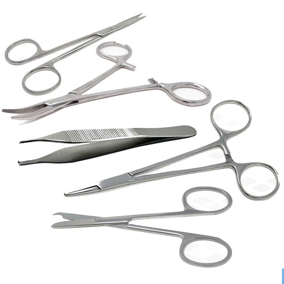 5-Piece Laceration Kit Surgical Suture Instruments Set with Needle Holder Scissors Hemostat Adson Forceps Stainless Steel