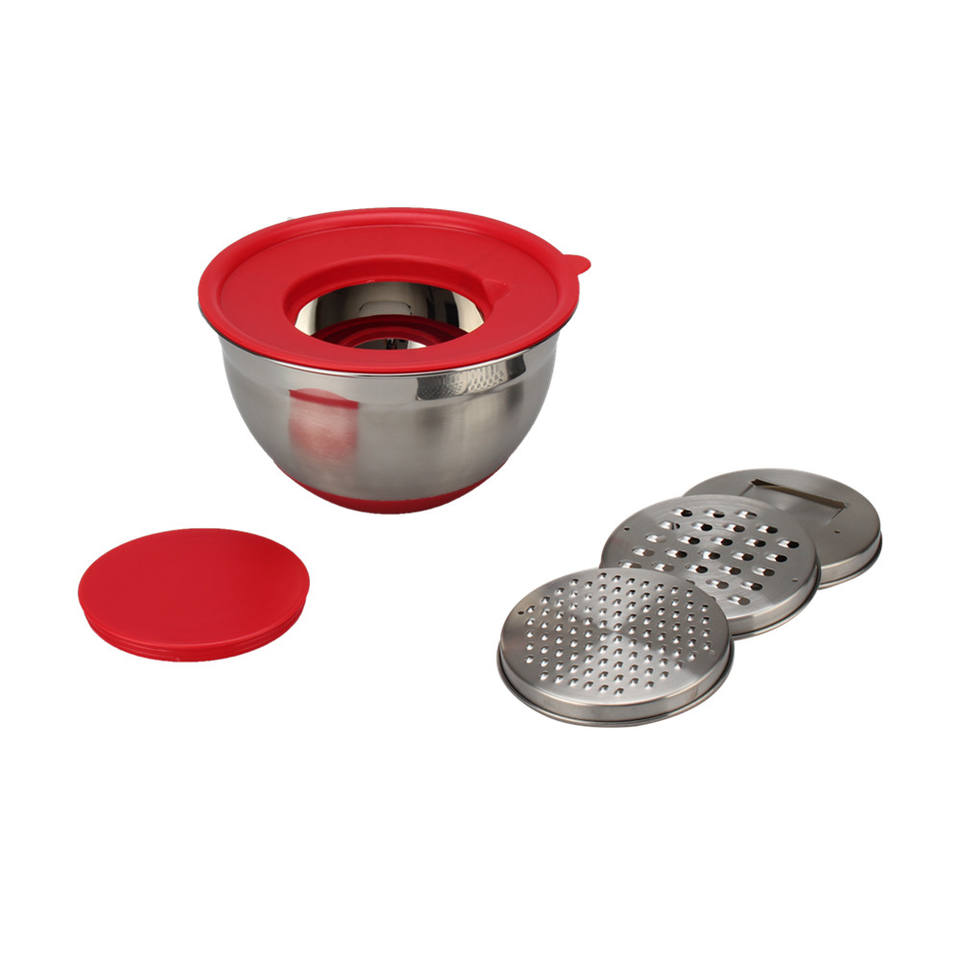 5QT Premium Mixing Bowl Red Anti-Slip Silicone with Airtight Lid and Grater BPA-Free Metal for Party Occasions