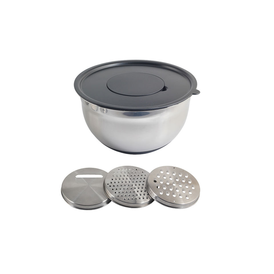 5QT Stainless Steel Mixing Bowls with 3 Grater Attachments, Non-Slip Silicone Base Mixing Bowl