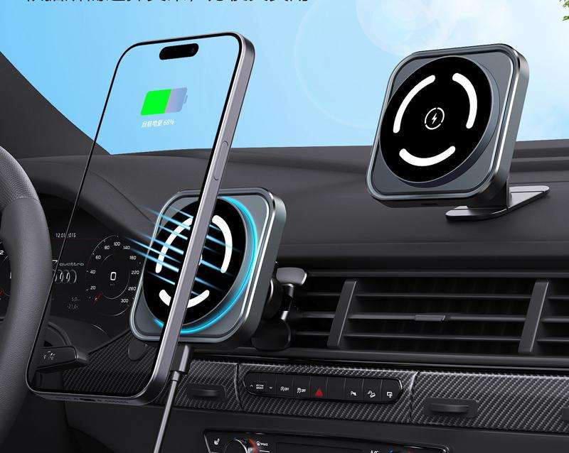 5W Dual USB Output Wireless Waterproof Power Station Car Charger Universal Magnetic Car Mount Phone Holder 360 Degree Rotation