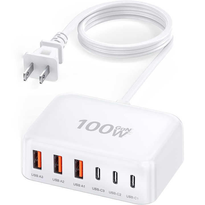 120W GaN 6 Port PD USB C and QC USB A