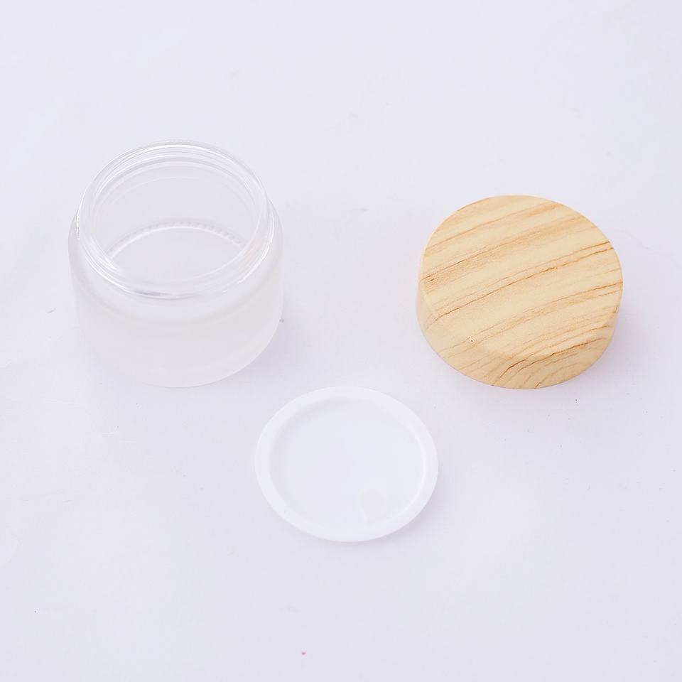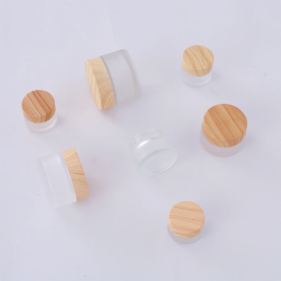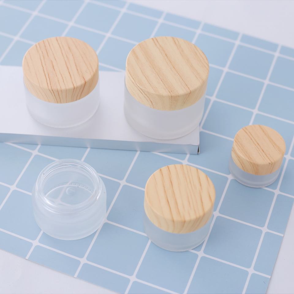 5g 15g 30g 50g 100g clear Green Amber Glass Cream Jar with Wood Grain Lid Frosted Bamboo Cosmetic Jars