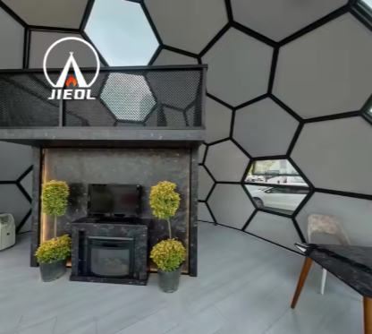 5m Diameter Aluminum Frame Dome Tent with Fireplace & Foldable Furniture for Family Vacation