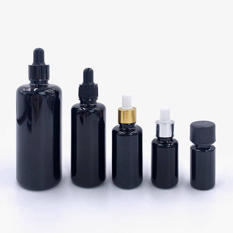 5ml 10ml 15ml 20ml 30ml 50ml 100ml Empty Round Boston Glossy Black Dropper Glass Bottles for Essential Oil