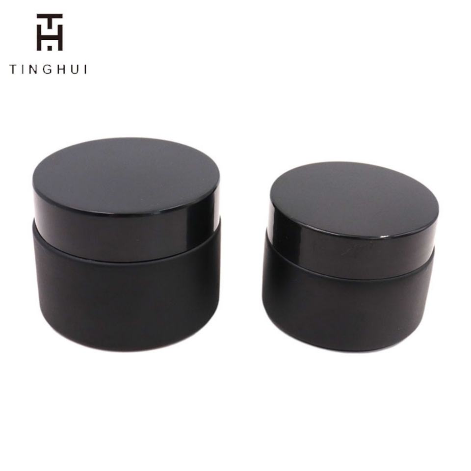 5ml 10ml 15ml 30ml 50ml 100ml Matte Black Wide Mouth Glass Jar 1oz Black Glass Cream Jar with Lid