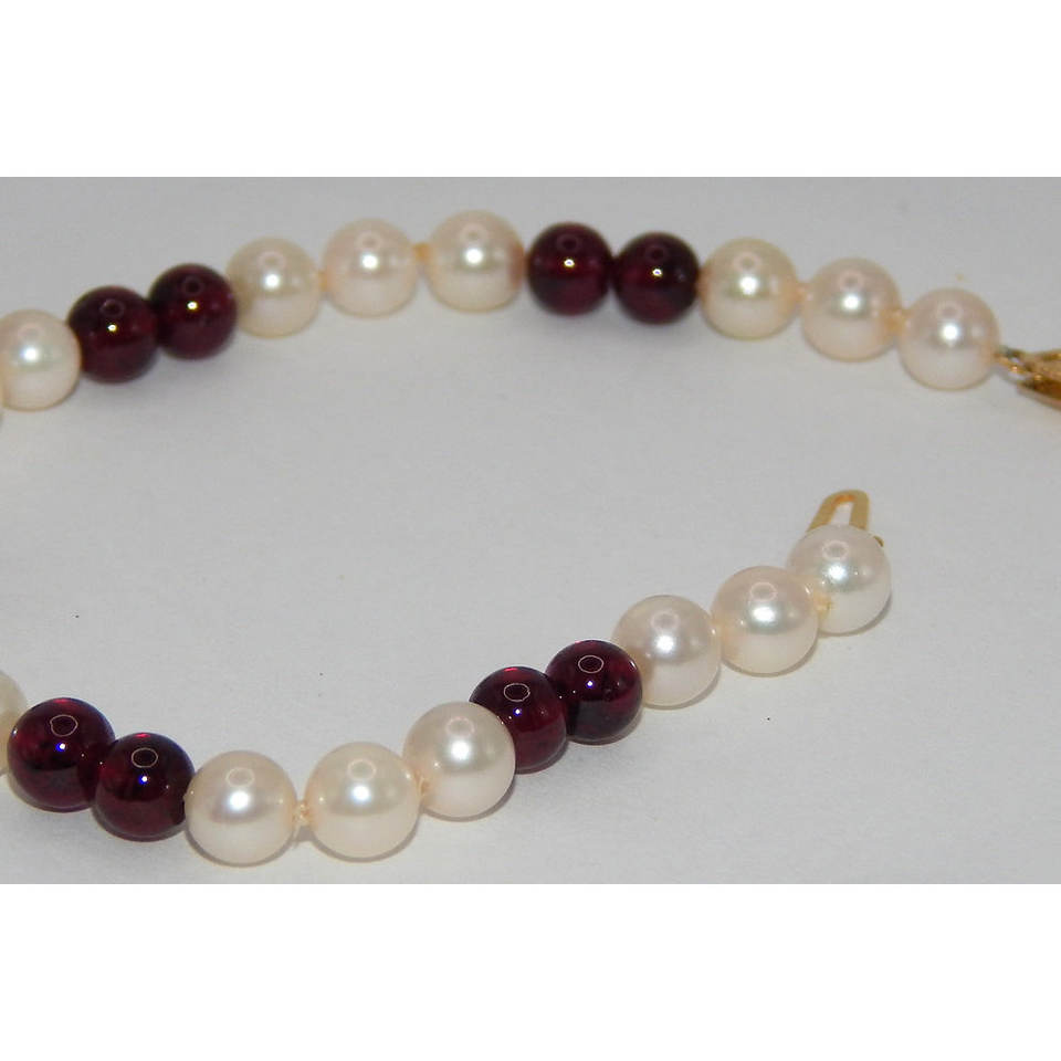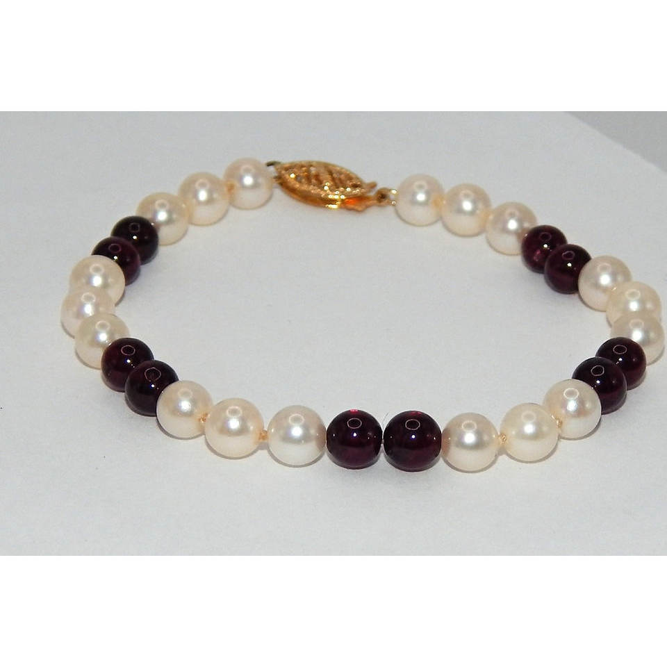 5mm Cultured Pearl and Ruby Gemstone Bracelet with 14k Clasp Elegant Pearl Bangles for Women